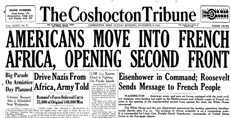 The 60th Infantry Regiment departed Hampton Roads, Virginia for Africa in early November 1942 as part of the Allies’ Western Task Force. This force, consisting of 38 ships and 56 escort vessels, would rendezvous with forces coming from the United Kingdom prior to invading North Africa. The Western Task Force was given the objective of landing three attack groups on the coast of Morocco.