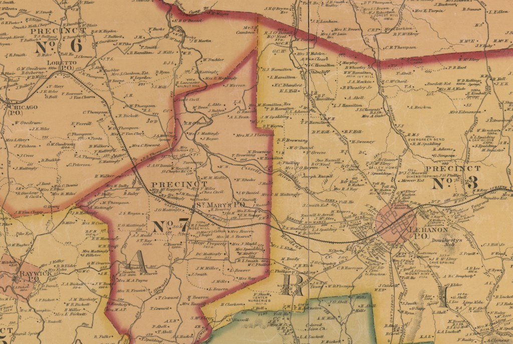 Patrick and Mary Kearns, along with Patrick’s mother, established themselves on a farm near the towns of Lebanon and Loretto, Kentucky by 1860. It is possible that they were already living there in 1858 when they welcomed the birth of their first child, John H. Kearns. Another son, Thomas, would follow in 1860 and the couple would ultimately yield eight children, all sons.