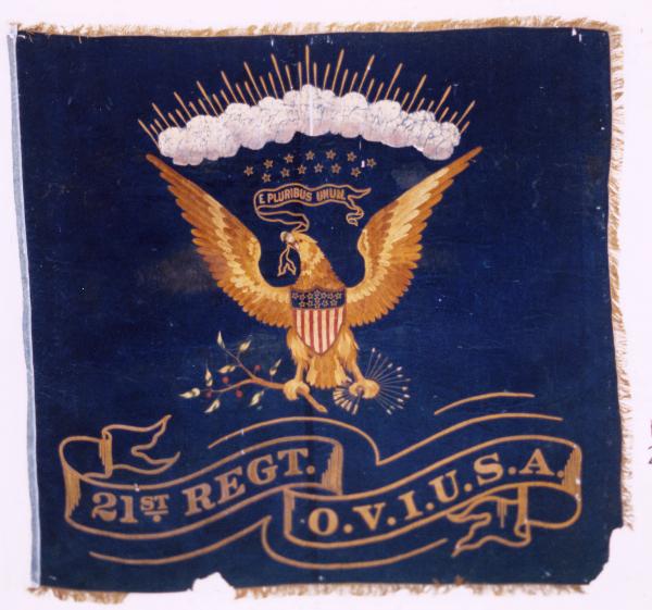 The Davy family settled near the town of Pandora in Putnam County, and it was here where William Davy was living when he entered military service in the 21st Ohio Volunteer Infantry Regiment. The regiment was in service since April 1861 and when the original three month enlistment period expired, it was reconstituted as a three-year regiment in September 1861. William enlisted on September 1, 1861.