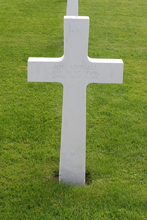 Joseph’s mother, during the first week of October 1918, received a telegram from the War Department informing her that her son had been wounded by gas in early August. She was not terribly worried at the time, since she had recently received letters from him dated up to September 25, 1918 stating that he had returned to his unit. Unfortunately for Joseph, he had returned just in time for the Meuse-Argonne offensive against the Germans. The 3rd Infantry Division was brought into the battle for the second phase of the assault, beginning October 4, 1918. It was during the second phase that the American forces launched several frontal assaults that finally broke through the German defenses. It was during these assaults that Private Joseph Aspinall was killed.