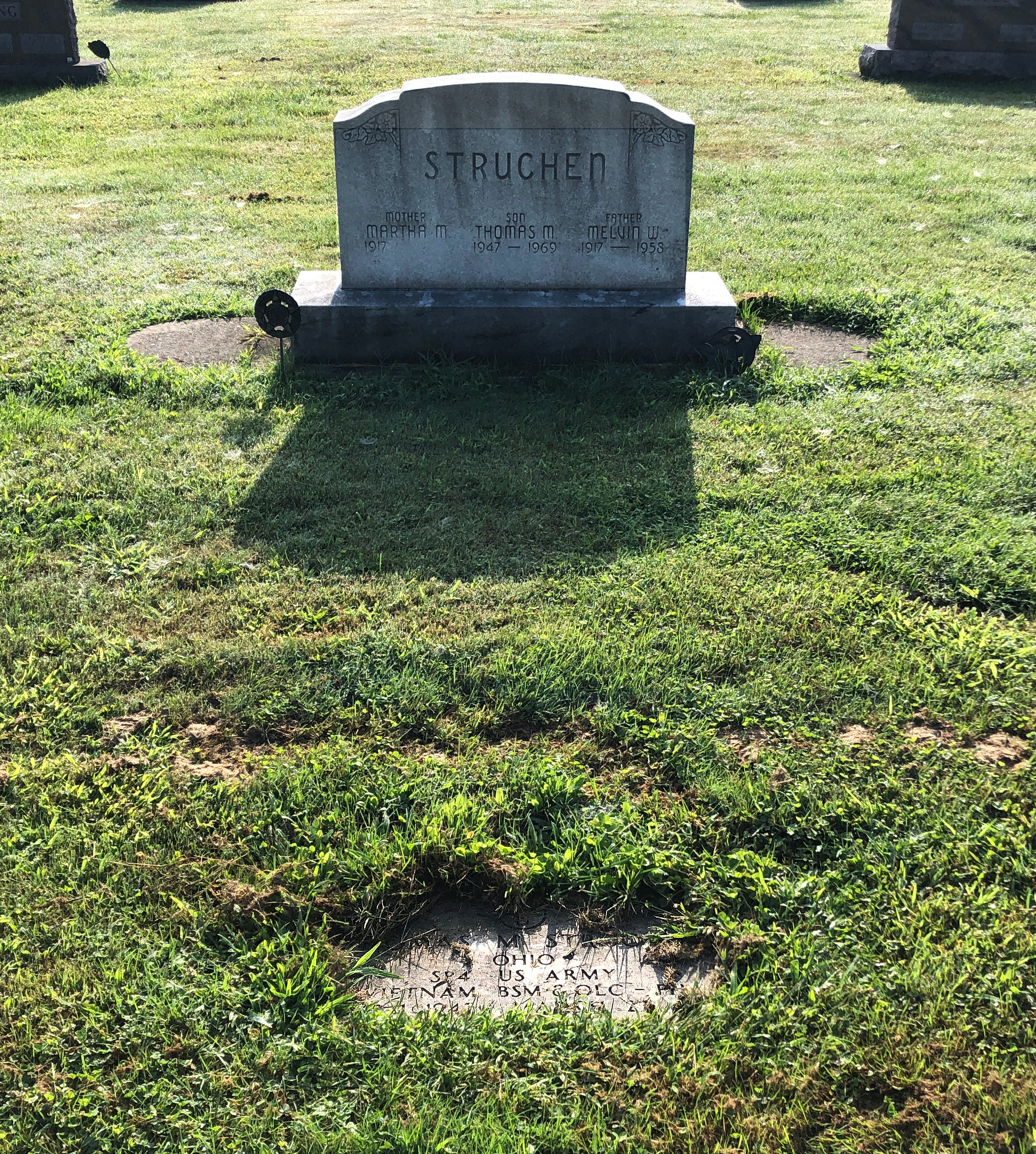 Their son, Thomas Michael Struchen, was born October 1, 1947. The couple was living on West High Avenue in New Philadelphia when, in September 1951, Thomas walked into the path of a pick-up truck driving down the street. Luckily Thomas was not injured beyond a few scrapes and bruises, but it was enough to make the local newspaper. Tragedy struck the family in August 1958 when Melvin, then working as a truck driver, was killed in a horrible accident in Steubenville, Ohio. Martha, Thomas, and his older sister were now on their own.
