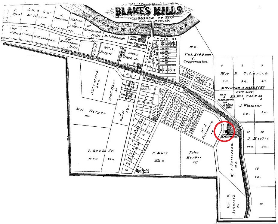 Charley Hammersly (1833-1911) and Jack Strickmaker (1862-?), both residents of the south side (then known as Blake’s Mills), were on their way home from work in early April 1904. Both men labored in the various industries on the south side during their lives, working at times in the lime kilns, brewery, and coal mines in the area. It was just getting dark as the the two men were walking home along Goshen Road, past the mill and mill pond nearing town. As they approached the mill pond the two men stopped dead in their tracks.