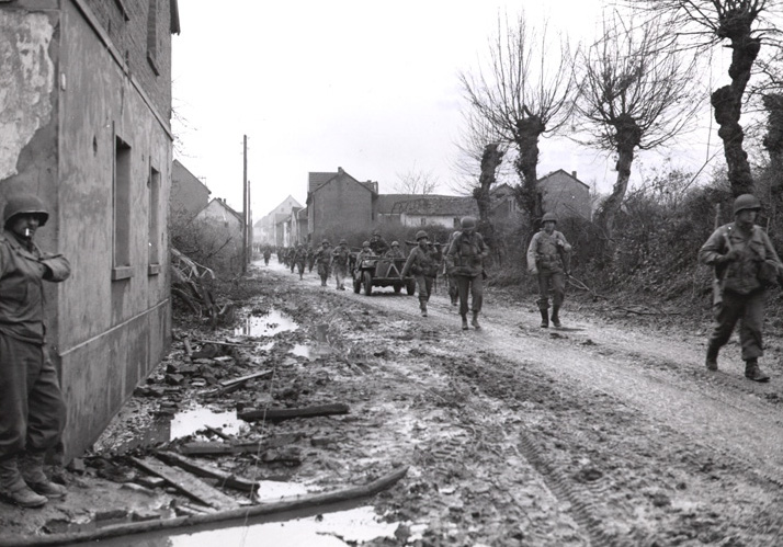 The record is not clear about when Harold rejoined his unit, but it was before the 30th Division’s efforts to break through the German Siegfried Line in the fall of 1944. The 30th Division’s mission at the beginning of October 1944 was to break through between the towns of Rimsburg, Holland and Mariensburg, Germany by crossing the Wurm River and neutralizing German defenses there. The after action report for the subsequent battle recorded that the 120th Infantry encountered heavy artillery fire as they crossed the river and advanced through the heavy woods to their front. German pillboxes and artillery continued to challenge their advance, but the 120th was able to achieve their objective by nightfall on October 5, 1944.