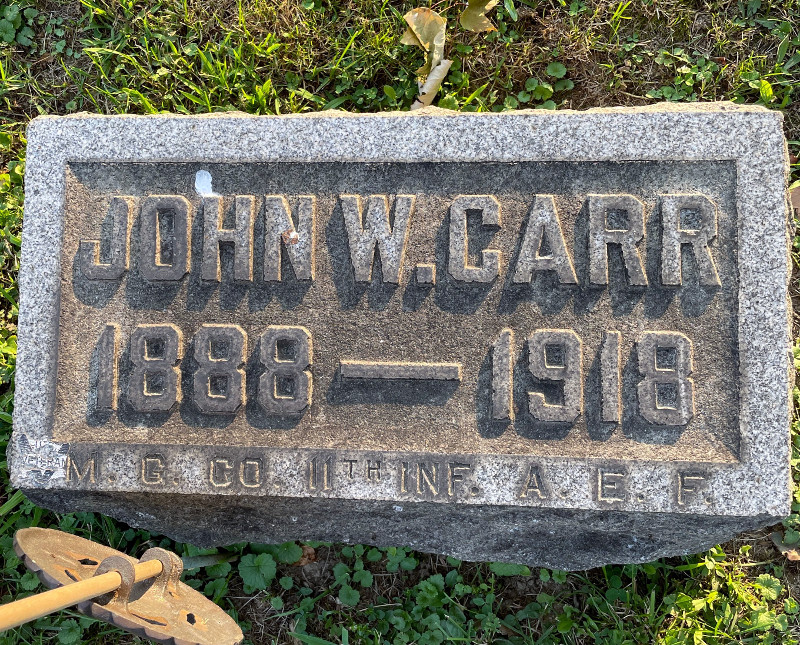 Private John Warner Carr’s family were notified of their son’s death on November 21, 1918, ten days after the Armistice that ended the war. Private John Warner Carr is buried in Union Cemetery in Uhrichsville.