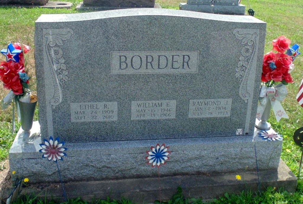 When the Border family returned to Tuscarawas County, they moved to the Stone Creek area and Raymond started working as a painter. The family first appears as residents of Stone Creek in the local newspapers in 1951 when Raymond’s mother’s obituary is published. Raymond and Ethel’s children, all sons, were born before they moved to Tuscarawas. Their youngest son, William Border (1946-1966), was born just before they moved to Stone Creek from Akron. William attended school in Stone Creek, eventually graduating from Stone Creek High School in 1964.